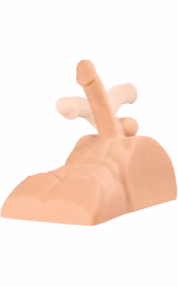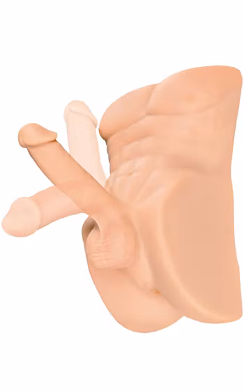 Härligt naturtrogen manskropp som låter dig både rida, och penetrera hans anus. Dildon penetrerar dig 15 cm, medans analens djup är 14 cm. Skönt strukturerad i analen för extra stimulans vid penetration. Rörlig penis och pung, och en inbjudande öppning baktill.