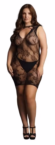 Visa dina kurvor med stil i denna förföriska miniklänning i vackert spetsmönster. Den höga, öppna halsringningen skapar en elegant kontrast till den kroppsnära designen – perfekt för dig som vill kombinera elegans med sex appeal.