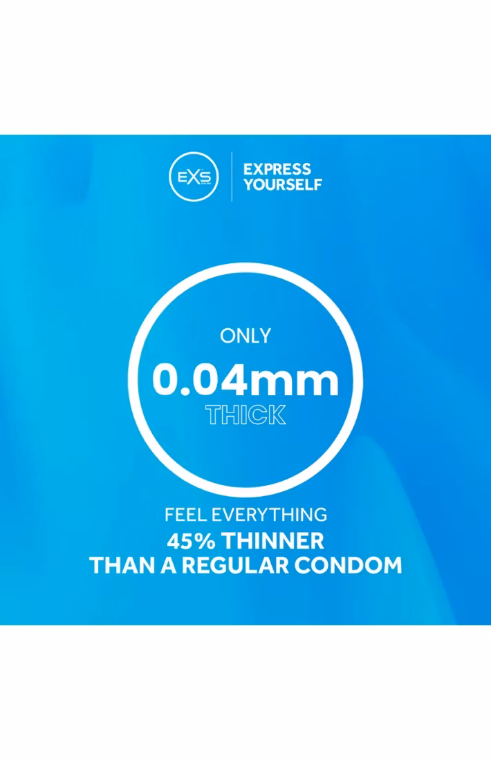 Allt står i namnet! EXS Air Thin känns som om du inte har på dig något alls, vilket ger den glädjande känslan av bar hudkontakt mellan dig och din partner. EXS Air Thin Condoms kallas "den riktiga ultratunna kondomen" och är exceptionellt mjuka och tunna.