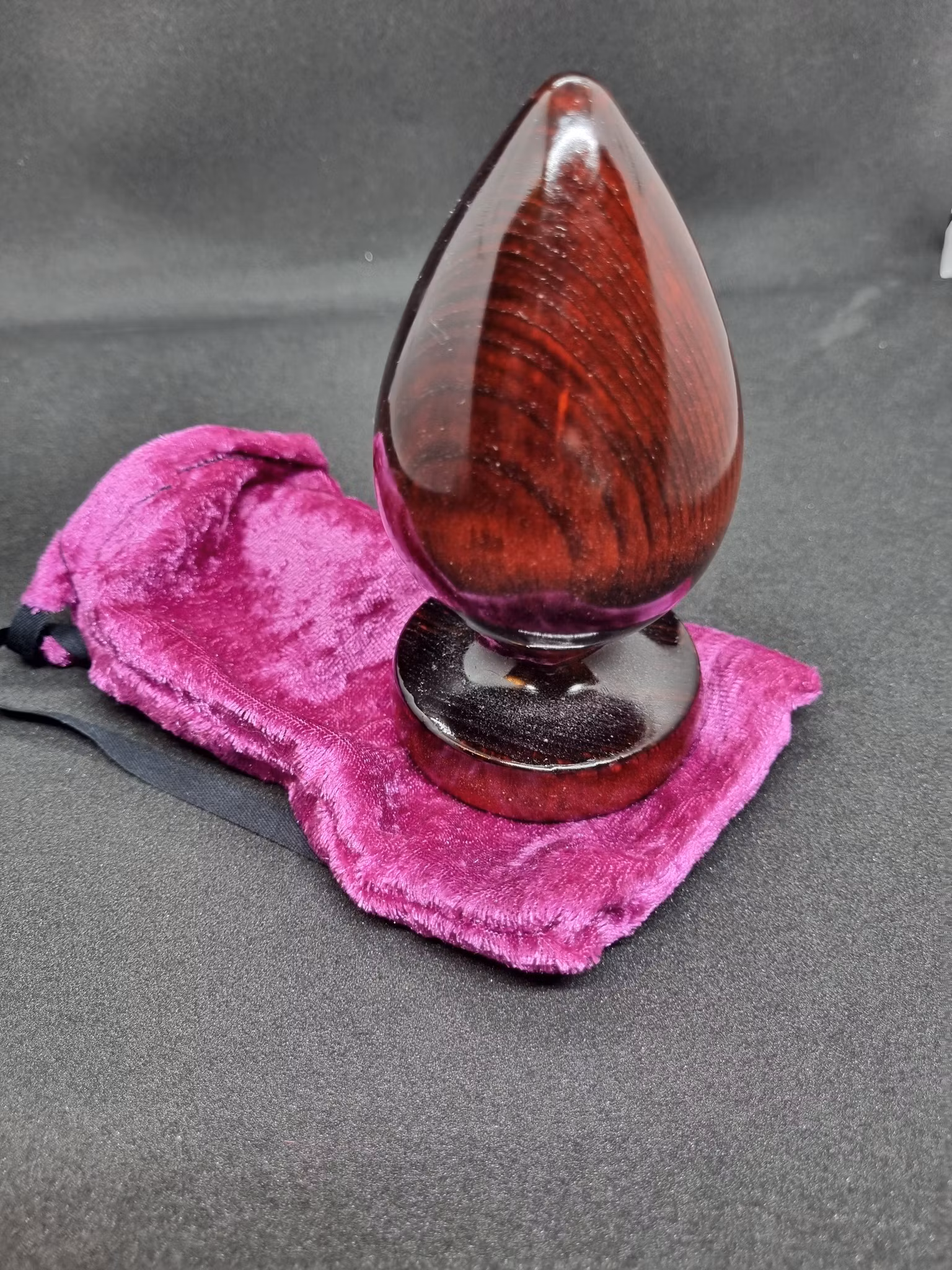 Denna analplugg är tillverkad i betsad furu som frästs fram i former som gör att den verkligen känns när den används analt på grund av sin storlek. Den är belagd med en kraftig livsmedelsklassad epoxi och är ca 6 cm i diameter på största stället och har en längd på ca 11,6 cm. Den riktigt påtagliga formen och storlek gör att den ”känns” men ändå har en len yta. Den är extra förstärk med en lång skruv inuti för att klara lite tuffare behandling.